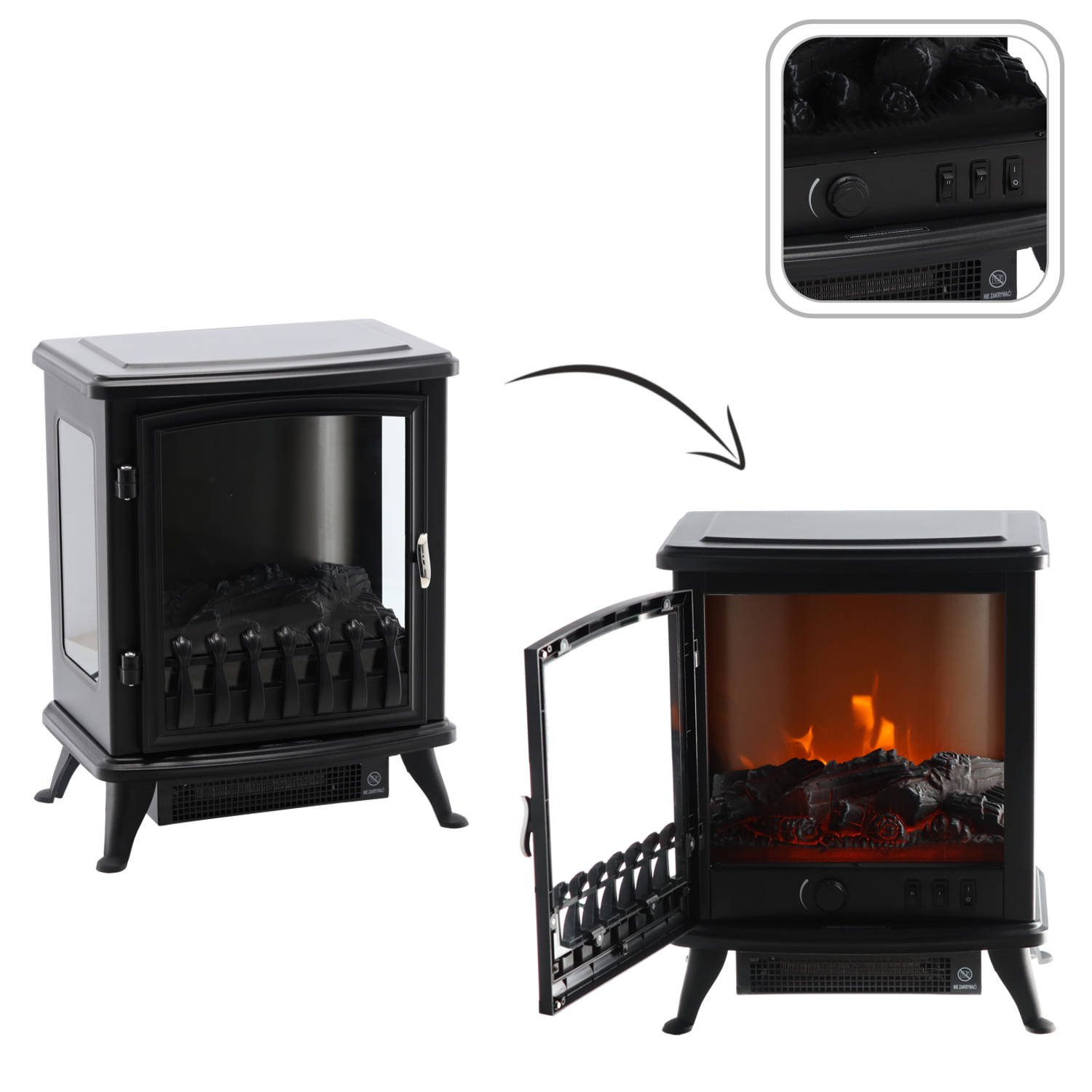 Laisvai pastatomas elektrinis židinys su itin realistišku liepsnos efektu – puikus būdas sukurti jaukią atmosferą bet kuriame interjere. Trys stikliniai langeliai – durelės ir dvi šoninės sienelės – suteikia gilumo pojūtį ir natūralų ugnies vaizdą. Liepsnos efektas veikia nepriklausomai nuo šildymo funkcijos, tad jaukumą galėsite mėgautis net ir šildymo sezono metu.