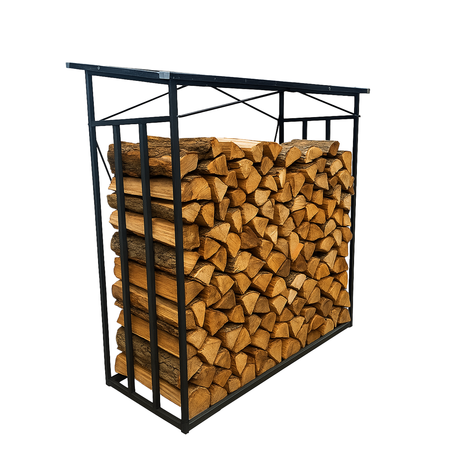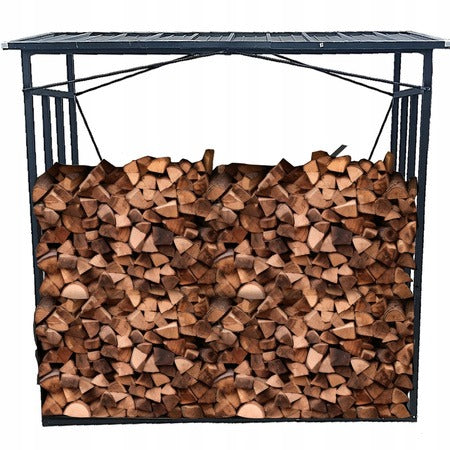 Tvirtas ir ilgaamžis metalinis stelažas, skirtas malkų laikymui. Įrengtas banguotu stogeliu, kuris apsaugo malkas nuo drėgmės bei lietaus. Puikiai tinka malkoms laikyti sode ar kieme, užtikrinant tvarką ir patogumą.