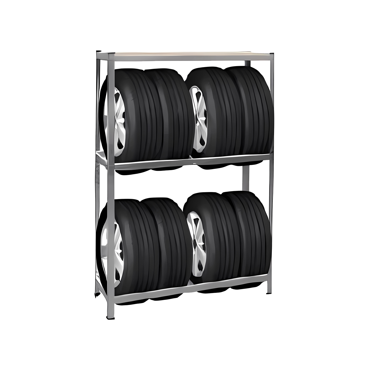 Tvarkyk garažą, dirbtuves ar sandėliuką su tvirtu stelažu, skirtu specialiai padangoms ir kitiems daiktams laikyti. Su šiuo stelažu sutaupysi daug vietos ir įgysi papildomą lentyną įrankiams ar kitiems reikalingiems daiktams. Kompaktiški matmenys leidžia išlaikyti tvarką net ir mažoje erdvėje.