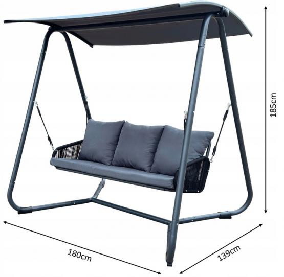 Patogios ir stilingos sodo sūpynės – puikus pasirinkimas ieškantiems komforto bei kokybės lauke. Reguliuojamas stogelis apsaugo nuo saulės, o talpi konstrukcija tinka trims asmenims. Idealiai tinka terasai ar sodui.