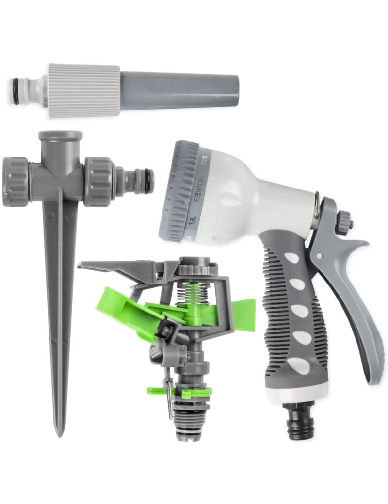 Visapusiškas laistymo rinkinys John Green – tai praktiškas sprendimas jūsų sodo priežiūrai. Komplekte esantis vežimėlis leidžia lengvai transportuoti 50m ilgio sodo žarną, o patogus laistymo pistoletas ir purkštuvas užtikrina tikslų ir tolygų vandens paskirstymą. Idealu laistyti augalus, veją ar valyti lauko paviršius.